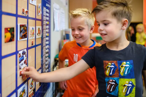 Elke school heeft natuurlijk regels. Die van ons ook. Maar binnen deze regels krijgen wij veel ruimte om te ontdekken wie we zelf zijn en wat we kunnen. We noemen dat vrijheid in gebondenheid. Je krijgt vrijheid om zelf je taakwerk te kiezen en te maken op het plekje dat jij het fijnst vindt, maar er zijn wel regels. Die regels zijn de ‘gebondenheid’. Ook leren we dat we verantwoordelijk zijn voor onze eigen keuzes. Elke keus die we maken, heeft namelijk een gevolg. Door zo te werken leren we dat we verantwoordelijk zijn voor ons eigen werk, en dat we al heel veel zelf kunnen.